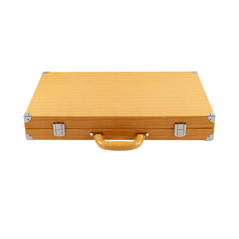 Meet the ultimate travel companion for game enthusiasts: a stylish and portable backgammon set, finished with a distinctive textured bamboo pattern. Perfect for on-the-go entertainment, cozy game nights, or as a thoughtful gift.