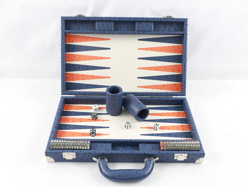 Rich Texture & Strength: Soft yet durable ostrich-embossed leather with a velvety playing surface. Polished Metal Accents: Gleaming silver hardware and smooth-gliding metal checkers. Everything in Its Place: Clever storage for checkers and dice – tidy and ready to go.